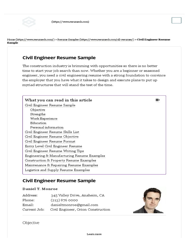 construction engineer resume objective